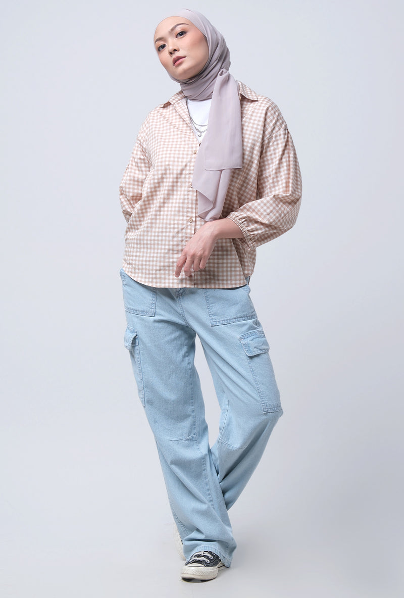 Kemeja Lengan Panjang Tabitha Blue Pink