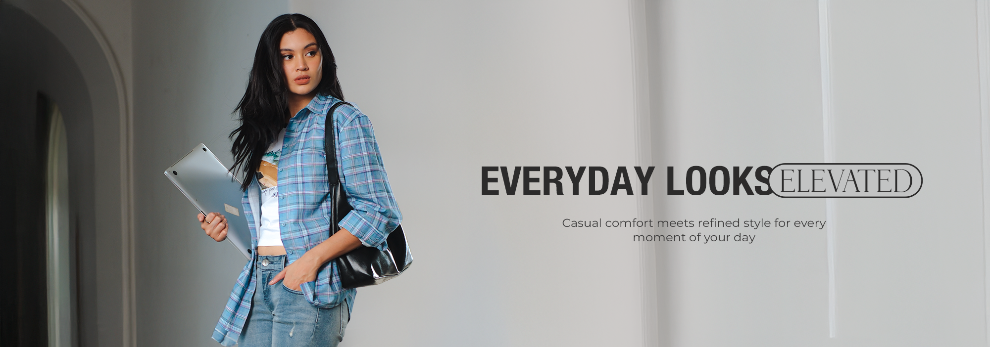 Kemeja Lengan Panjang Agnetha White Blue