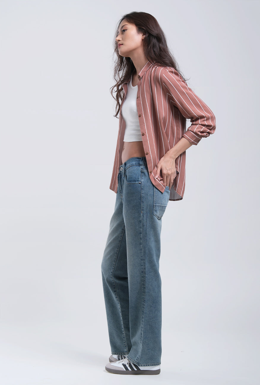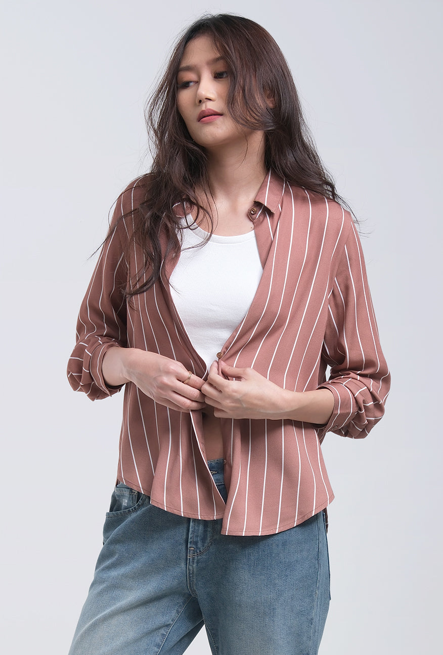 Kemeja Lengan Panjang Jayla Brown White