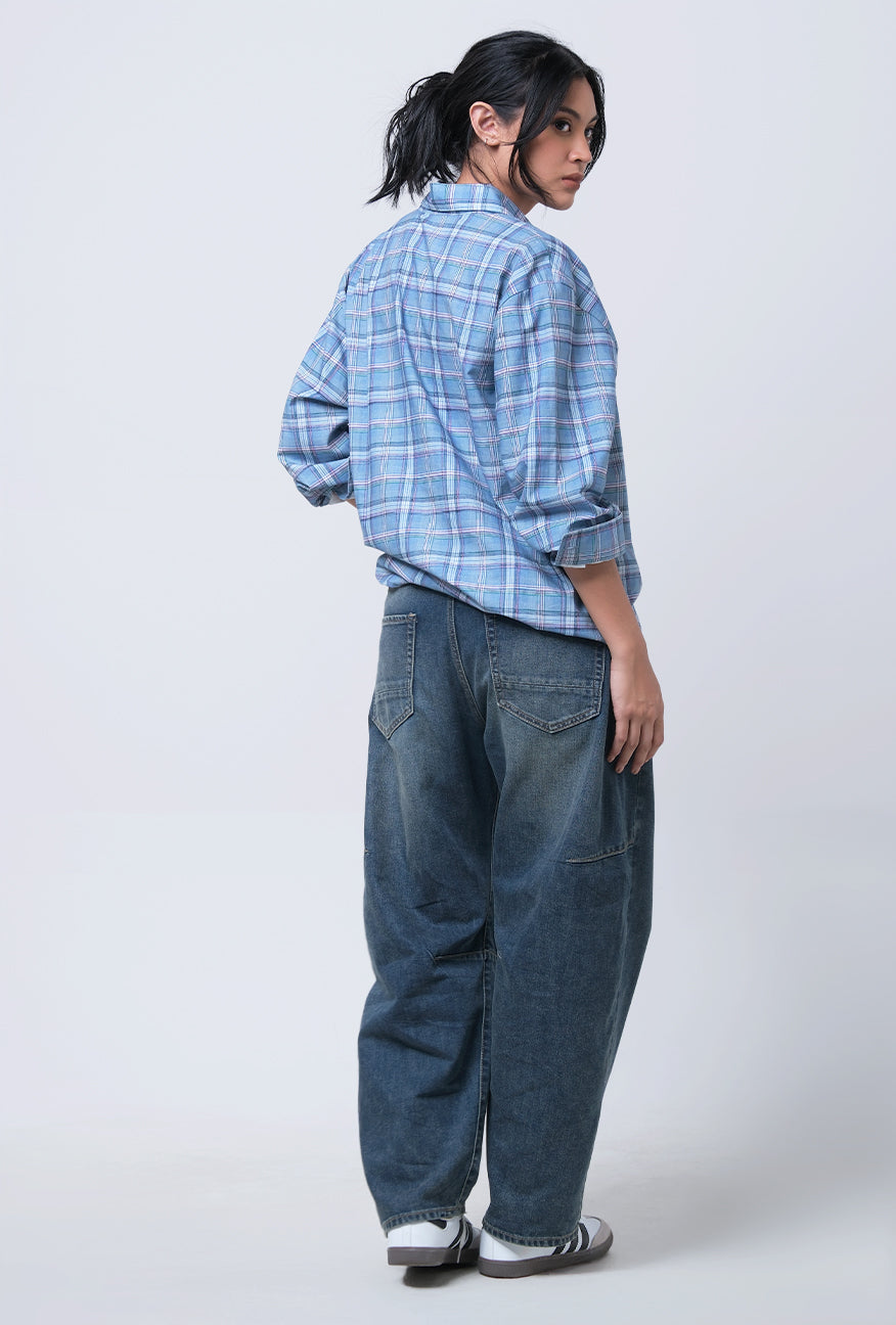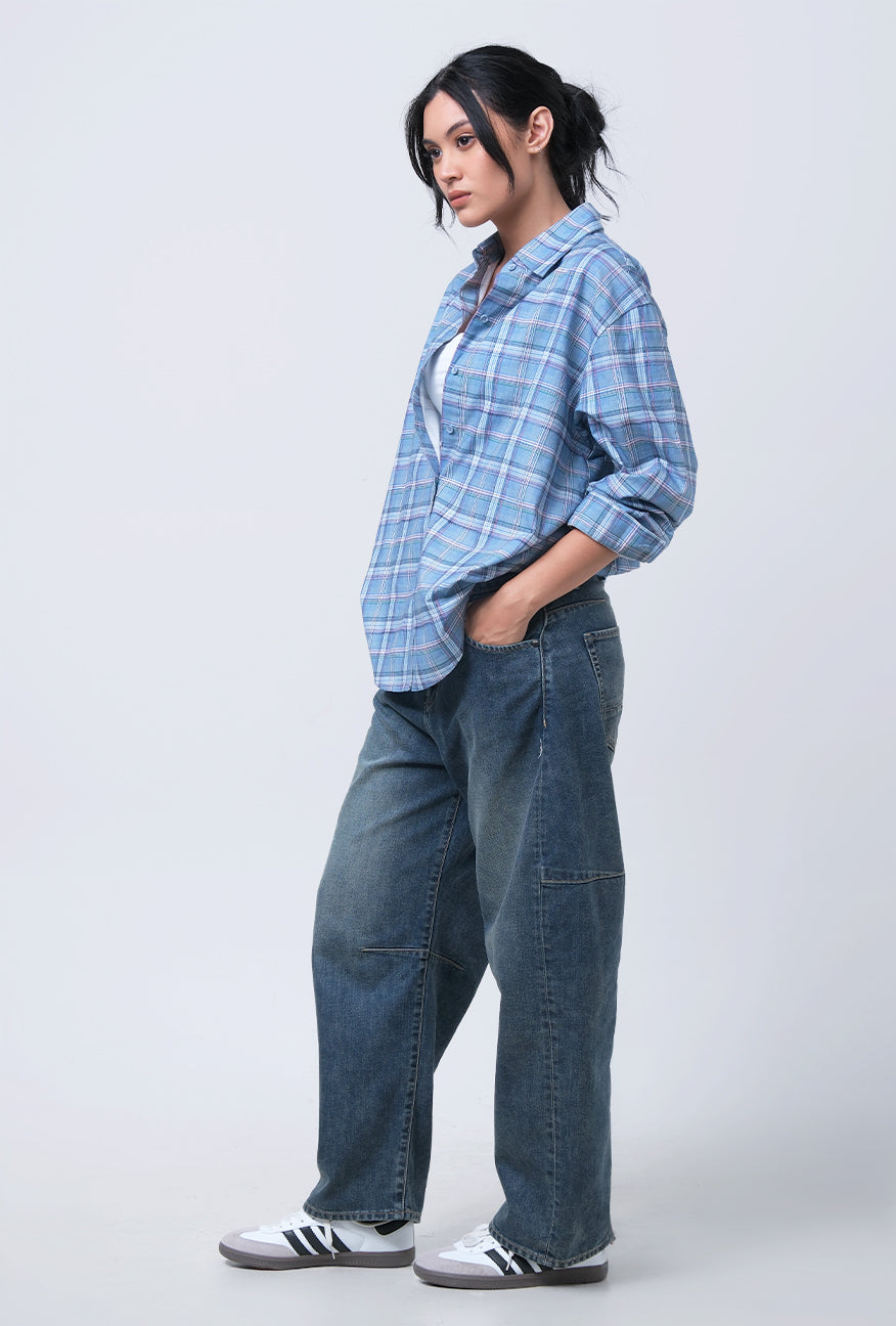 Kemeja Lengan Panjang Tabitha Blue Pink