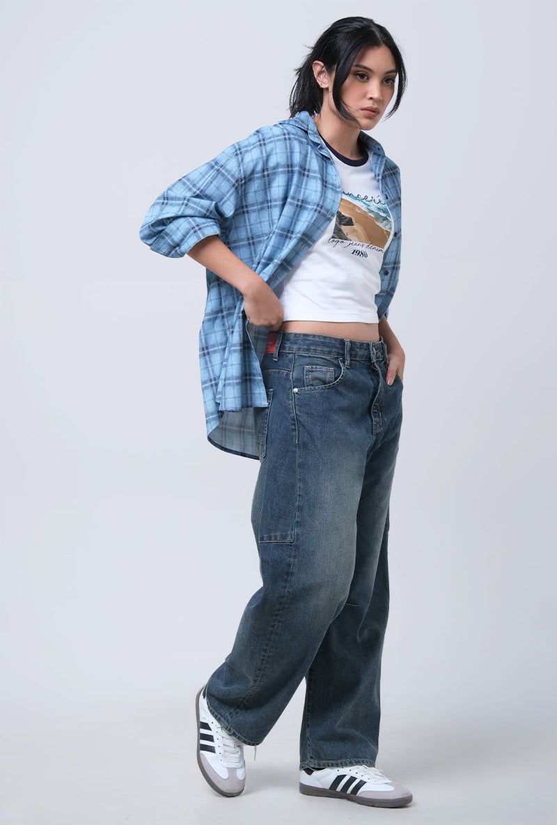 Kemeja Lengan Panjang Tabitha Blue Pink