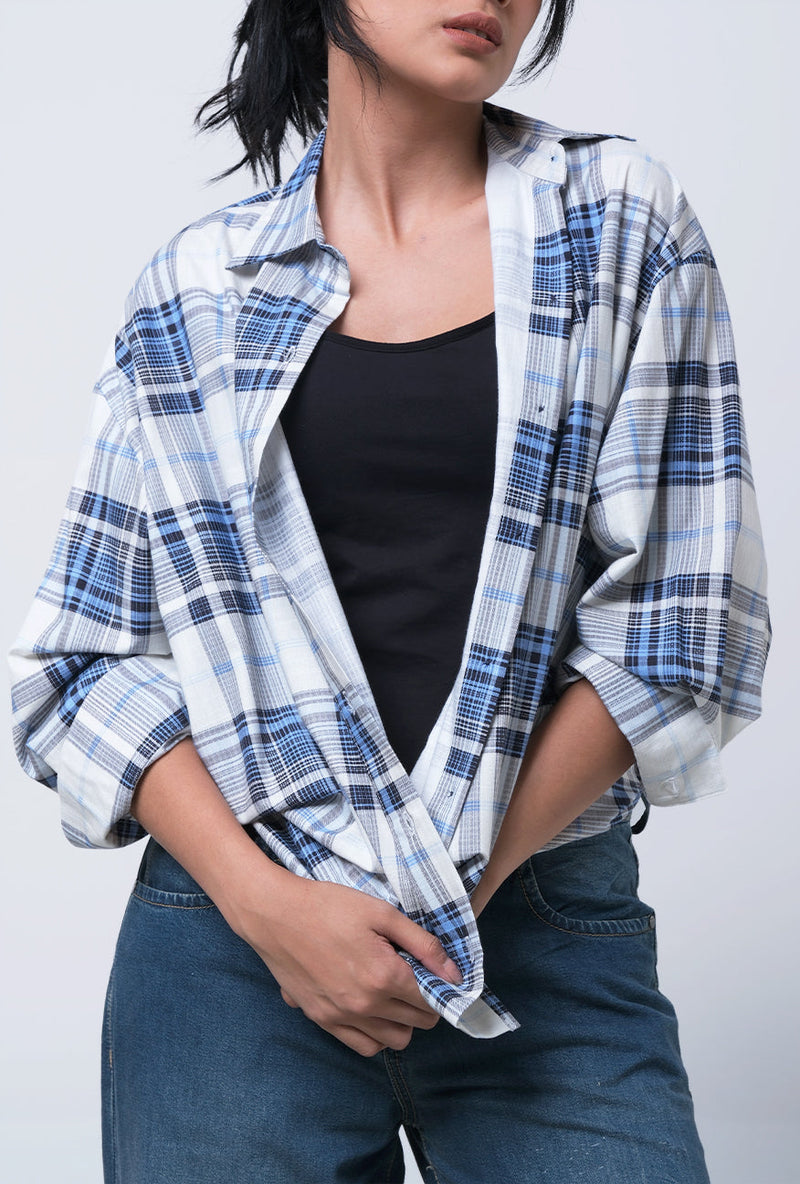 Kemeja Lengan Panjang Shanu Blue White Shirt