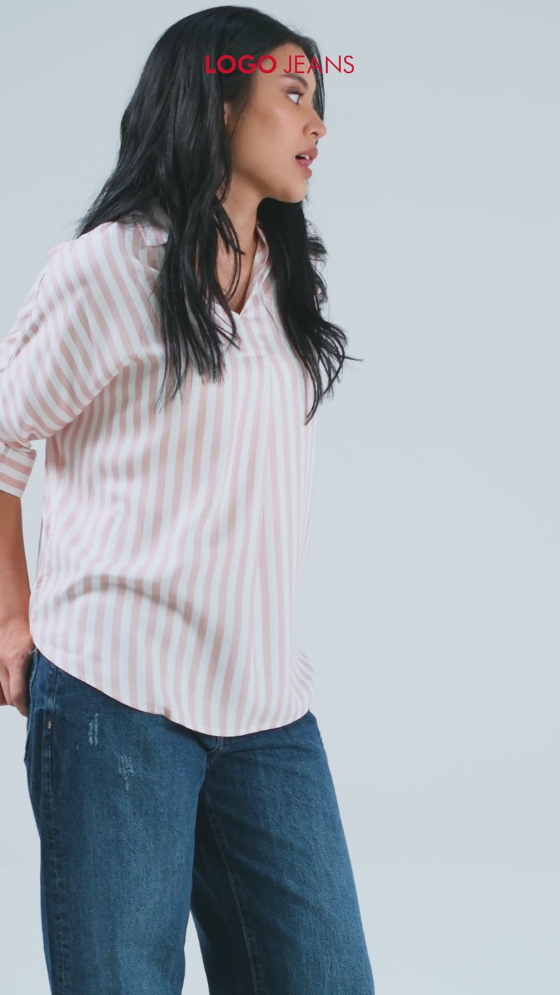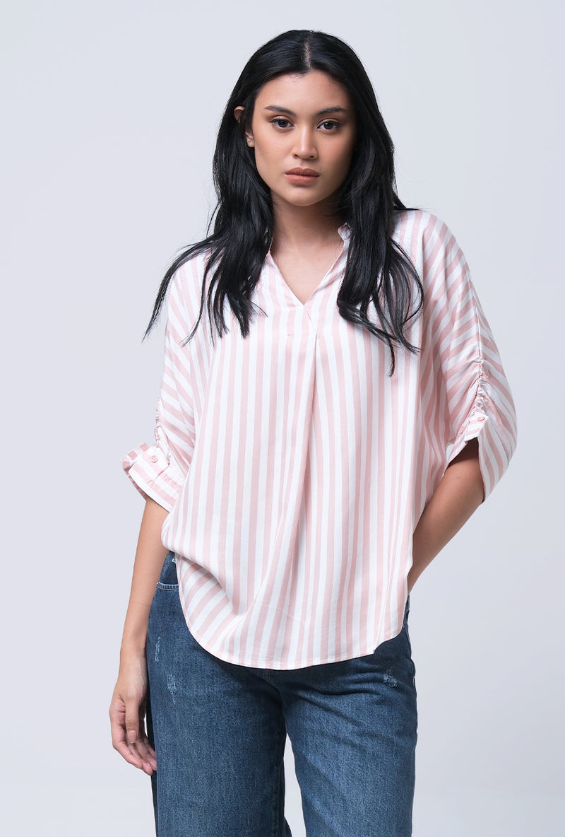 Kemeja Lengan Pendek Florentina Pink Offwhite