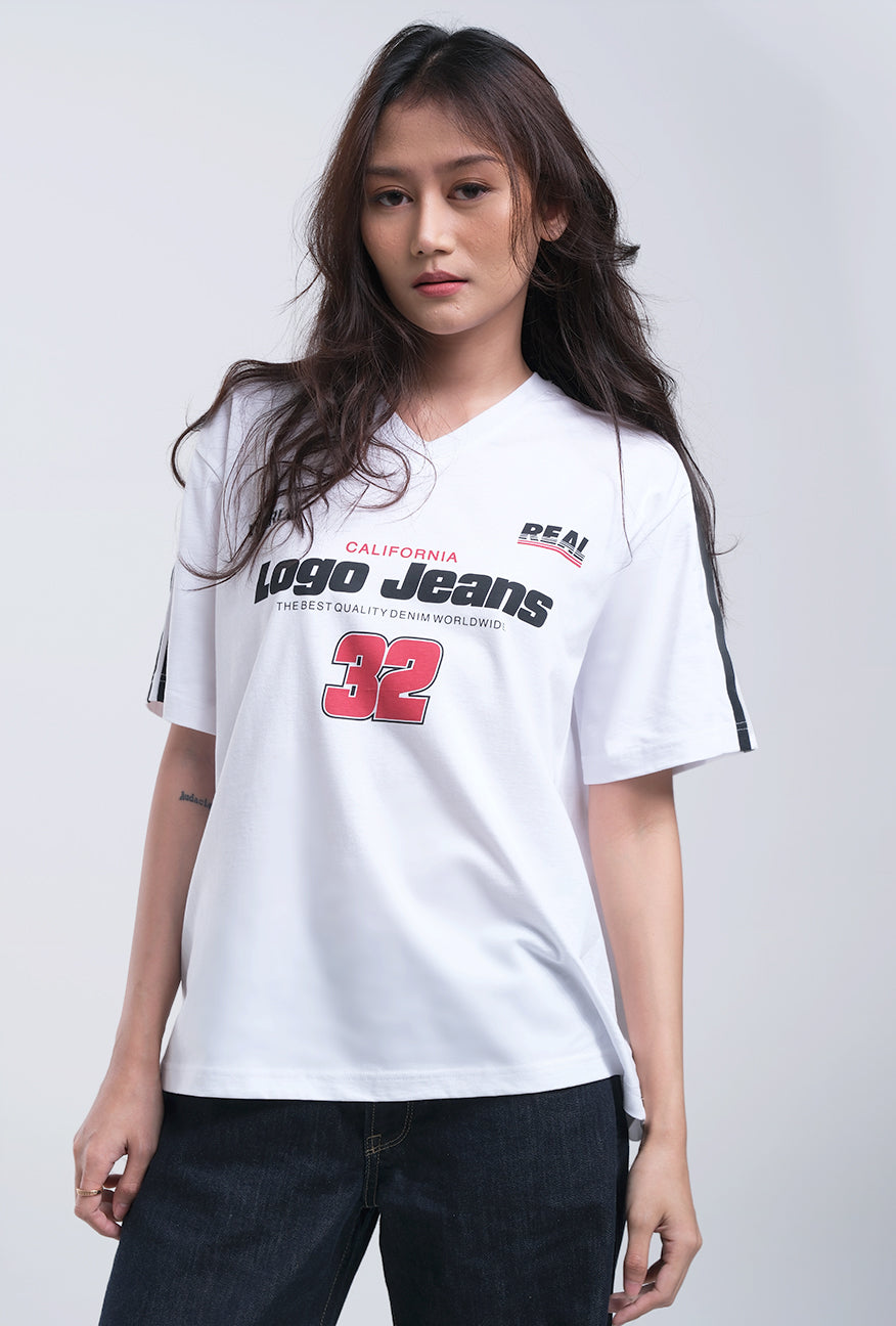 Kaos Wanita Shelia Logo Jeans adalah kaos lengan pendek dengan desain grafis yang minimalis pada bagian depan dan print stripe pada lengan menambah kesan tampilan sporty. Terbuat dari bahan katun berkualitas tinggi yang memberikan kenyamanan maksimal, namun tetap kasual dan stylish. Dengan model potongan yang oversized, kaos ini cocok untuk dipakai santai sehari-hari dengan dipadukan dengan celana jeans favorit.